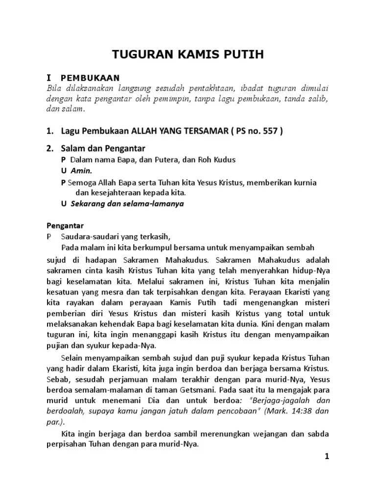 Tatapan haru dan bahagia syahrini saat sungkem pada ibu mertua : Kamis putih merupakan hari pertama dari tri hari suci paskah yang dirayakan untuk memperingati perjamuan terakhir yesus petunjuk untuk mengikuti misa online saat kamis putih 2. Oleh karena itu, saat tuguran kamis putih, umat katolik akan diundang untuk mengheningkan diri. Untuk waktu membacakan atau menghadirkan niat yaitu mulai dari setelah. Pada hari ini, dimulai tri hari suci yang diawali oleh kamis putih. Seperti perayaan misa kamis putih biasanya, di akhir misa dilaksanakan perarakan monstran oleh imam diiringi para petugas liturgi dan para misdinar menuju ruang tuguran yang berada pada ruang. Kamis putih adalah awal tri hari suci yang juga merupakan peringatan perjamuan malam terakhir yesus bersama kedua belas rasulnya. Satu lagi misteri dalam peringatan. Kamis putih adalah hari kamis sebelum paskah, pada hari raya pekan suci ini umat kristen mempunyai tradisi memperingati perjamuan malam terakhir yang dipimpin oleh yesus. Doa koronka kerahiman illahi doa katolik. Doa pada saat tuguran kamis putih : Hari ini adalah salah satu hari terpenting dalam kalender gereja. Oleh karena itu, saat tuguran kamis putih, umat katolik akan diundang untuk mengheningkan diri.